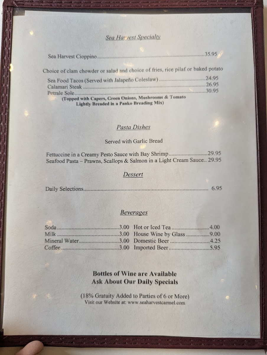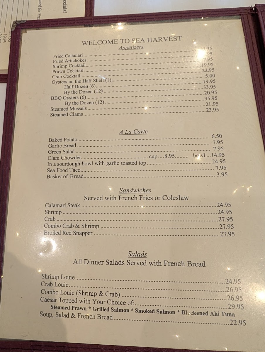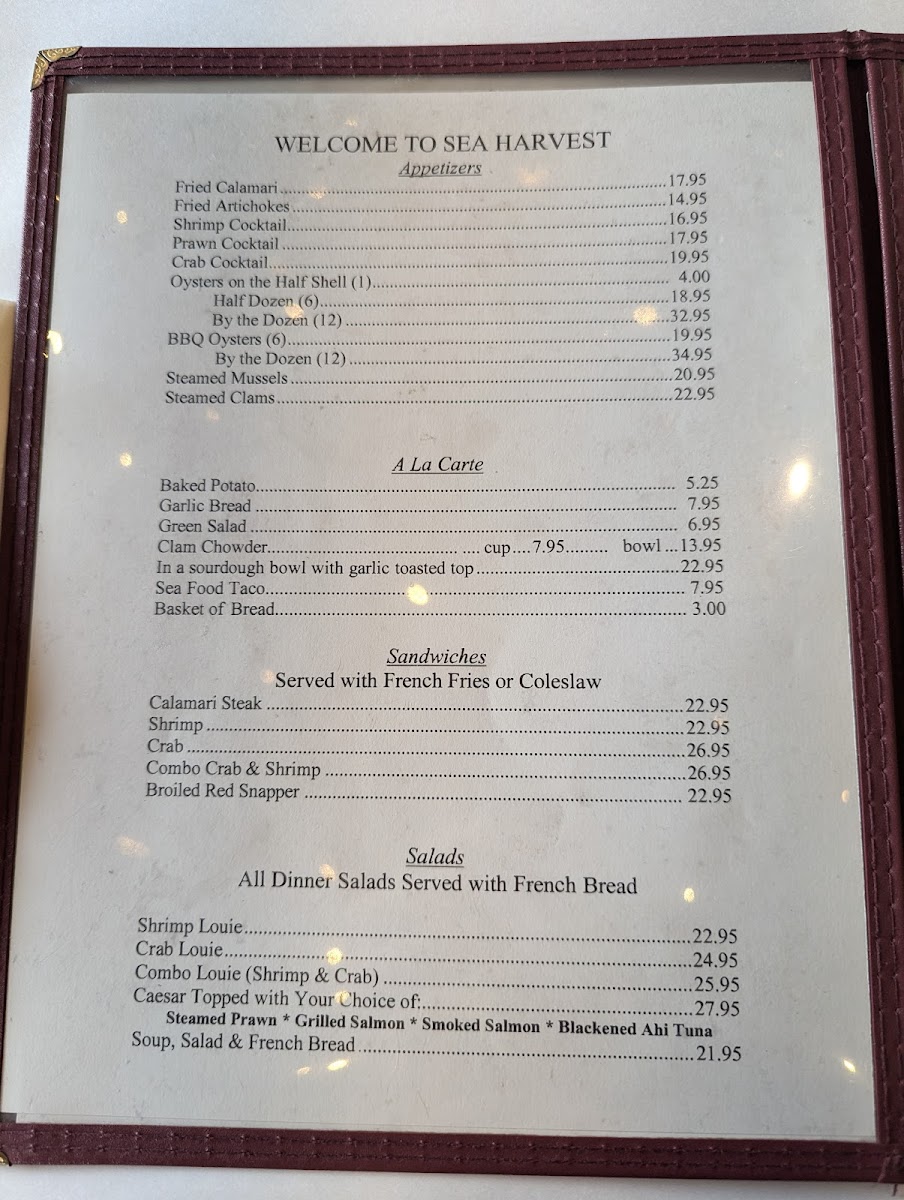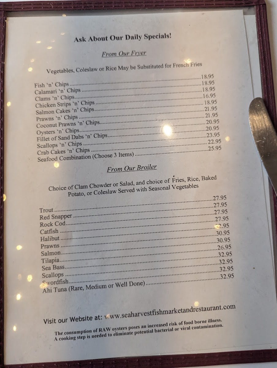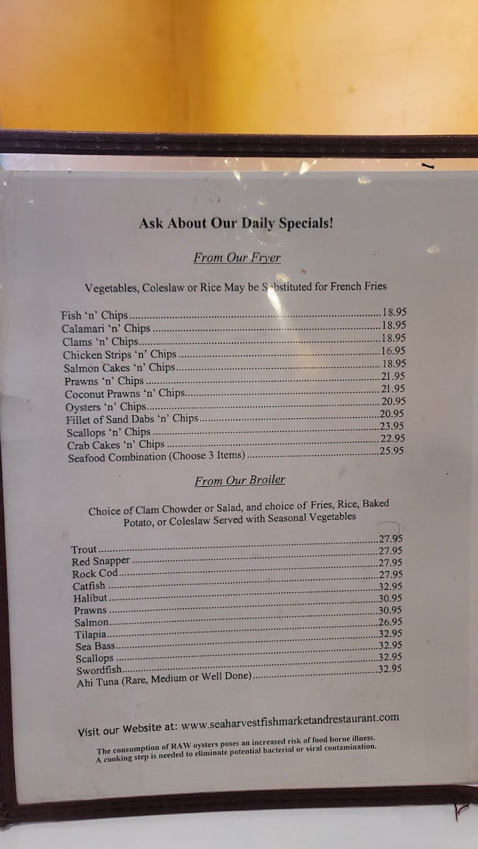 Sea Harvest Fish Market & Restaurants Menu
